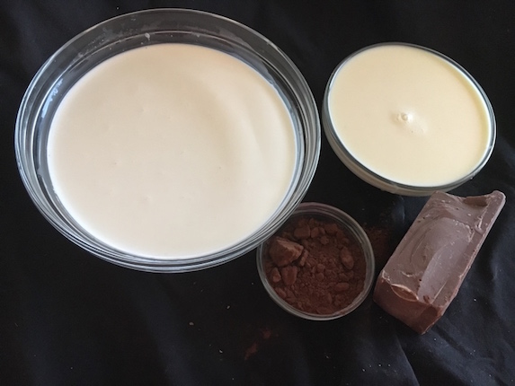 1. Combine whipping cream, eggnog and cocoa powder in medium size pot and mix well.