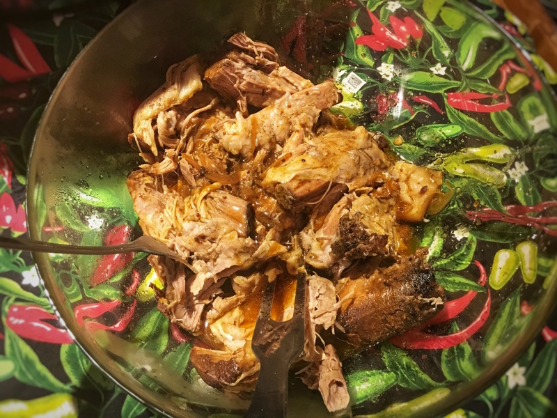 After 8 hours remove it from the the slow cooker and place it in a separate bowl to shred. You can easily shred it in the slow cooker, but I personally prefer not to, since shredding it in the slow cooker makes your meat greasier than it needs to be, and doesn’t allow you to have a nice dripping sauce on the side. Basically, doing it this ways allows you and your meal companion(s) to choose how dry or saucy they want to enjoy their meat.