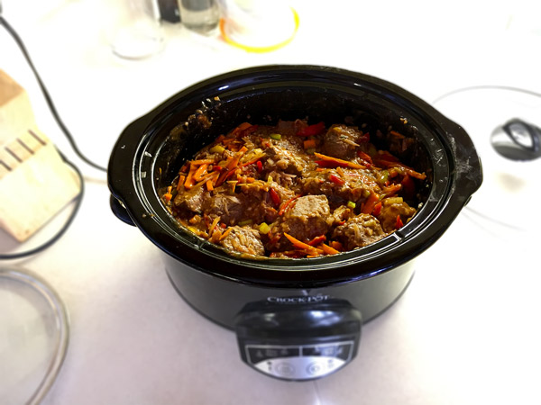 To be honest I didn’t think the slow cooker was going to do anything too special, and I remember taking a peek after 6 hours and it was still pretty runny. Romeo reminded me to be patient and see what happens in the last two hours and not to get discouraged – wow so glad I took his advice and waited – during those last 2 hours the stew thickened and became a nice, rich, brown (oh and filled our home with the most amazing aroma).
